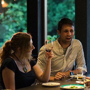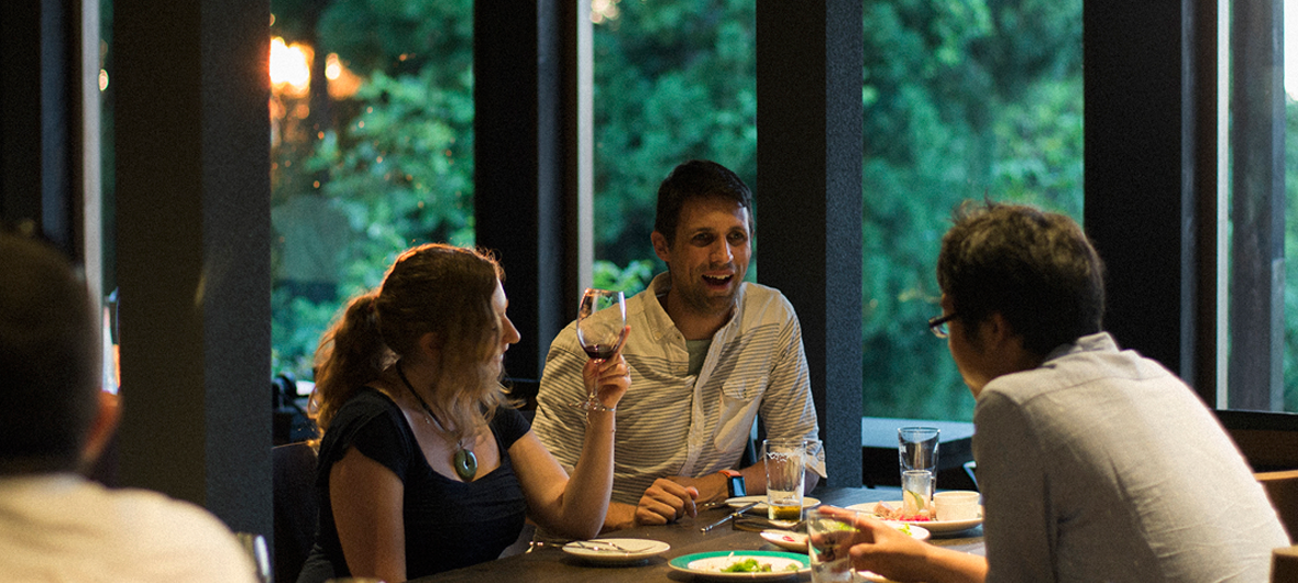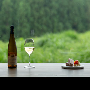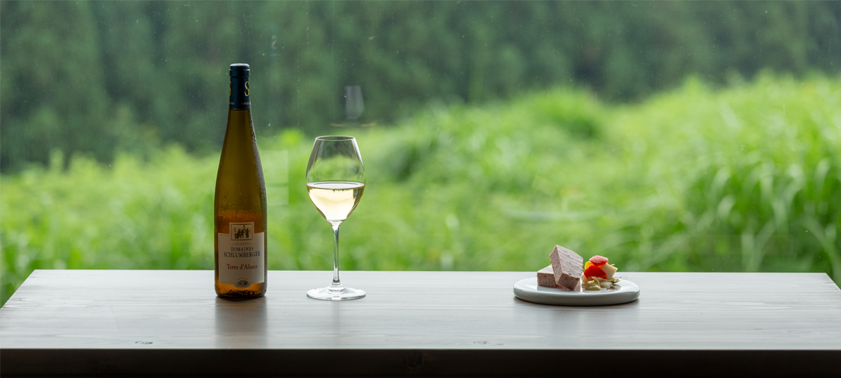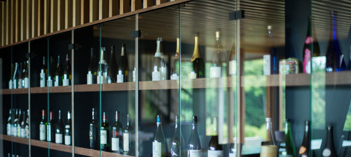 The restaurant at kamosu mori is where lovers of wine and sake gather.