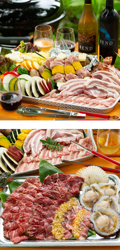 BBQ equipment set/beef short rib/beef tongue/beef skirt/beef hanging tender/beef chuck/Chef’s special pork spare ribs/pork loin/seafood/yakisoba noodles/seasonal vegetables(BBQ ingredients are subject to availability so may vary)