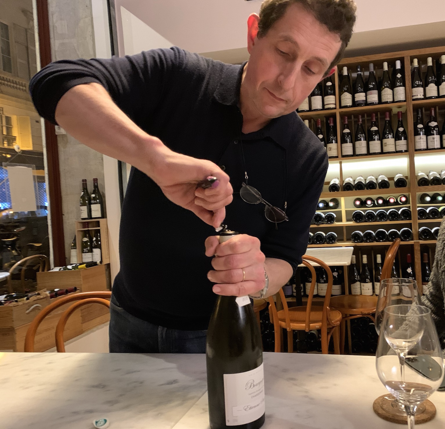 <地下に降りてオーナーとワインを迷う。>