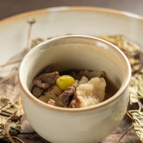Our dining experience is a "Local Gastronomy" where the artistry of Chef Akira Kuriyama—who earned a Michelin star in the "Michelin Guide Niigata 2020 Special Edition"—A local gastronomy where unique culinary wisdom shaped by the snowy climate resonates in harmony. We invite you to savor our seasonal course menus, fully immersed in the serene forest and snow-covered landscapes of Matsunoyama.