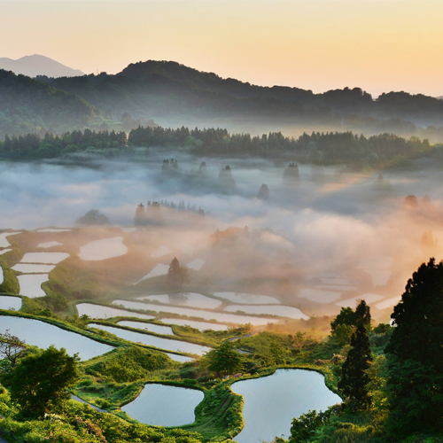 四季折々 、朝昼晩と、様々な顔を見せてくれます。NHK大河ドラマ「天地人」のオープニングに登場した風景として広く知られています。(車で15分)