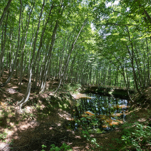 ブナの立ち姿が美しいことから「美人林」と名付けられました。樹齢約90年ほどのブナの木が一面に生い茂っている姿は圧巻です。(車で10分)